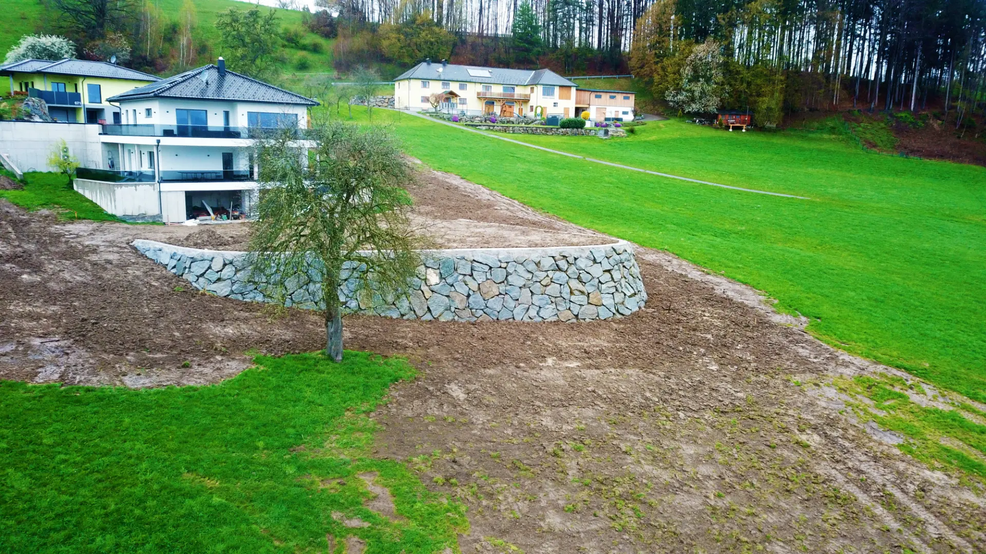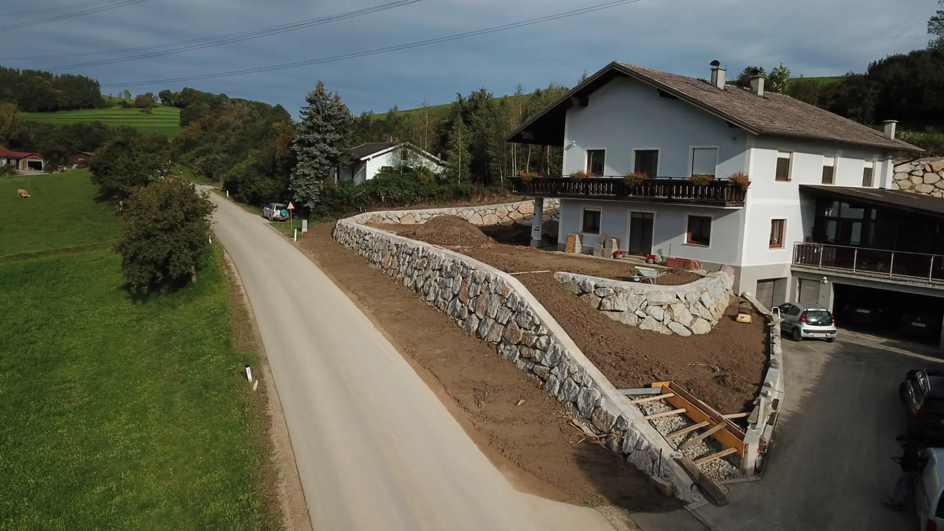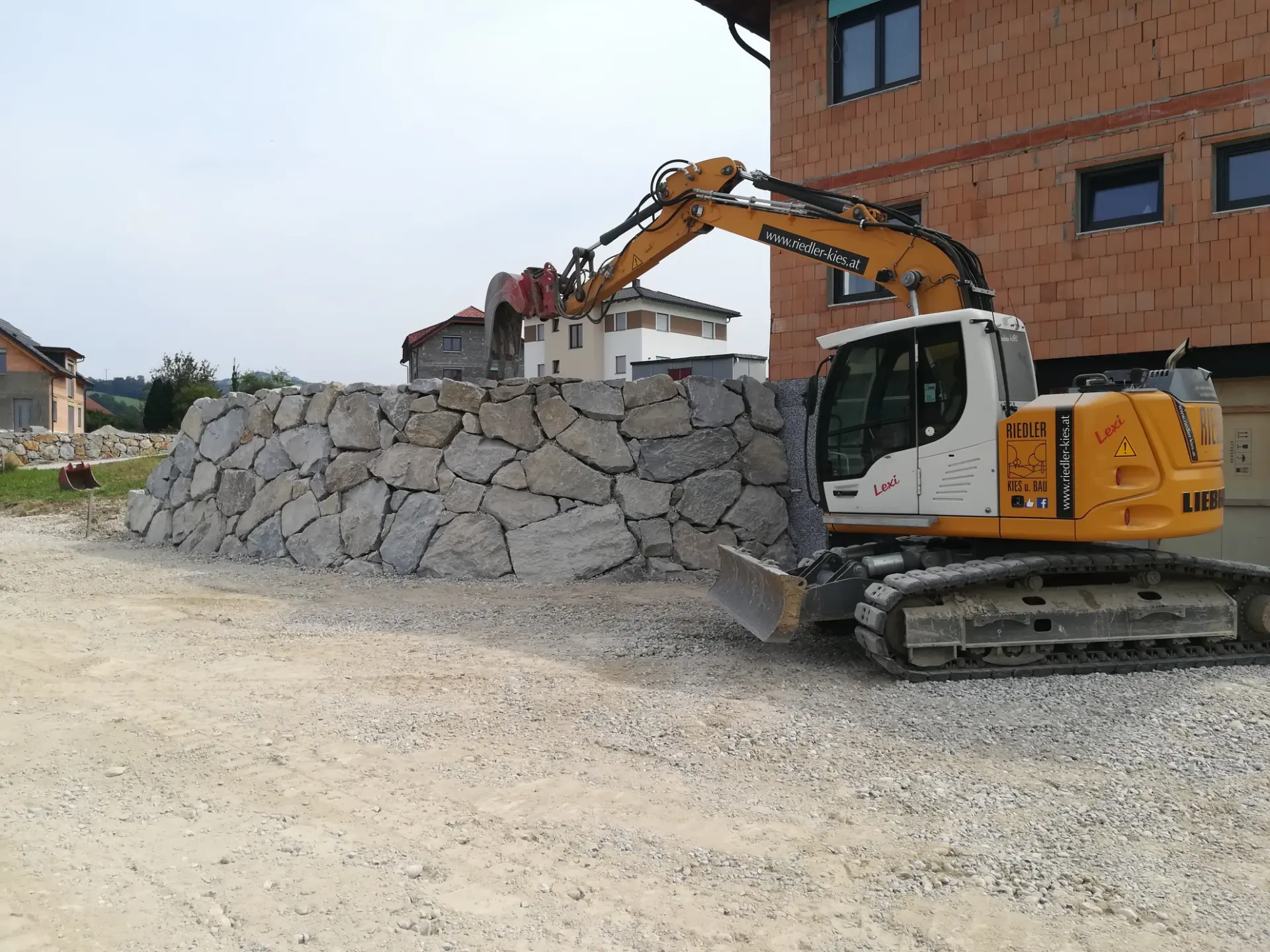 RIEDLER übernimmt Aushub vom Einfamilienhaus bis zur Tiefgarage, inklusive fachgerechter Entsorgung über die eigene Deponie. Geländeanpassungen mit Drainagen sorgen für tragfähige Untergründe und stabile Hänge. Steinschlichtungen, Wegebau und Wasserbau werden effizient geplant und dokumentiert. Für Außenanlagen bietet der Landschaftsbau funktionale Lösungen mit Material aus eigenen Werken. Moderne Vermessung und 3D-Steuerung sichern planbare Termine und saubere Ergebnisse.