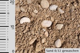 Sortiment & Kornabstufungen Betonsande (z. B. O/32, O/16, O/8), Kiesfraktionen (4/8, 8/16, 16/32), Schotter/Splitt sowie Zierkies, Ziersplitt, Gartenerde, Humus, Findlinge und Konglomeratsteine.